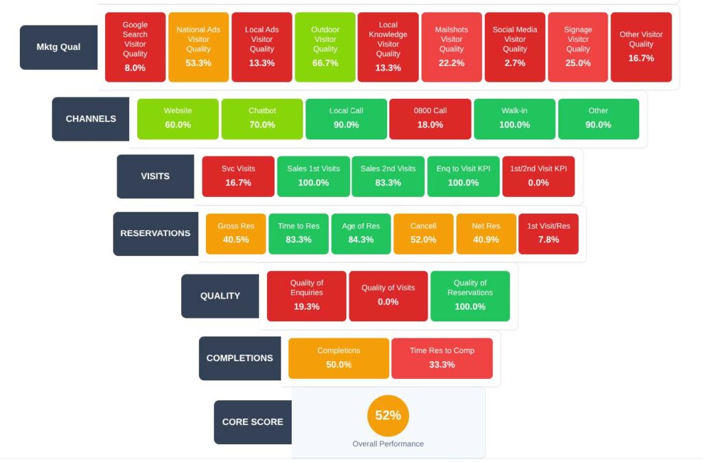 Measure lead, visit and reservation quality at each funnel stage, not just volume